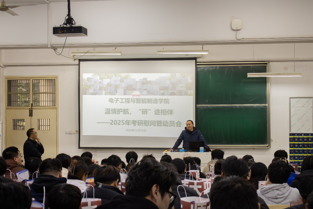 12月10日,我院举行“温情护航·研途相伴”2025年考研慰问暨动员会。学院党委书记夏云高出席活动,党委副书记高栋梁主持会议,全体毕业生班辅导员、2026届近300名考研学子参加慰问和动员活动。