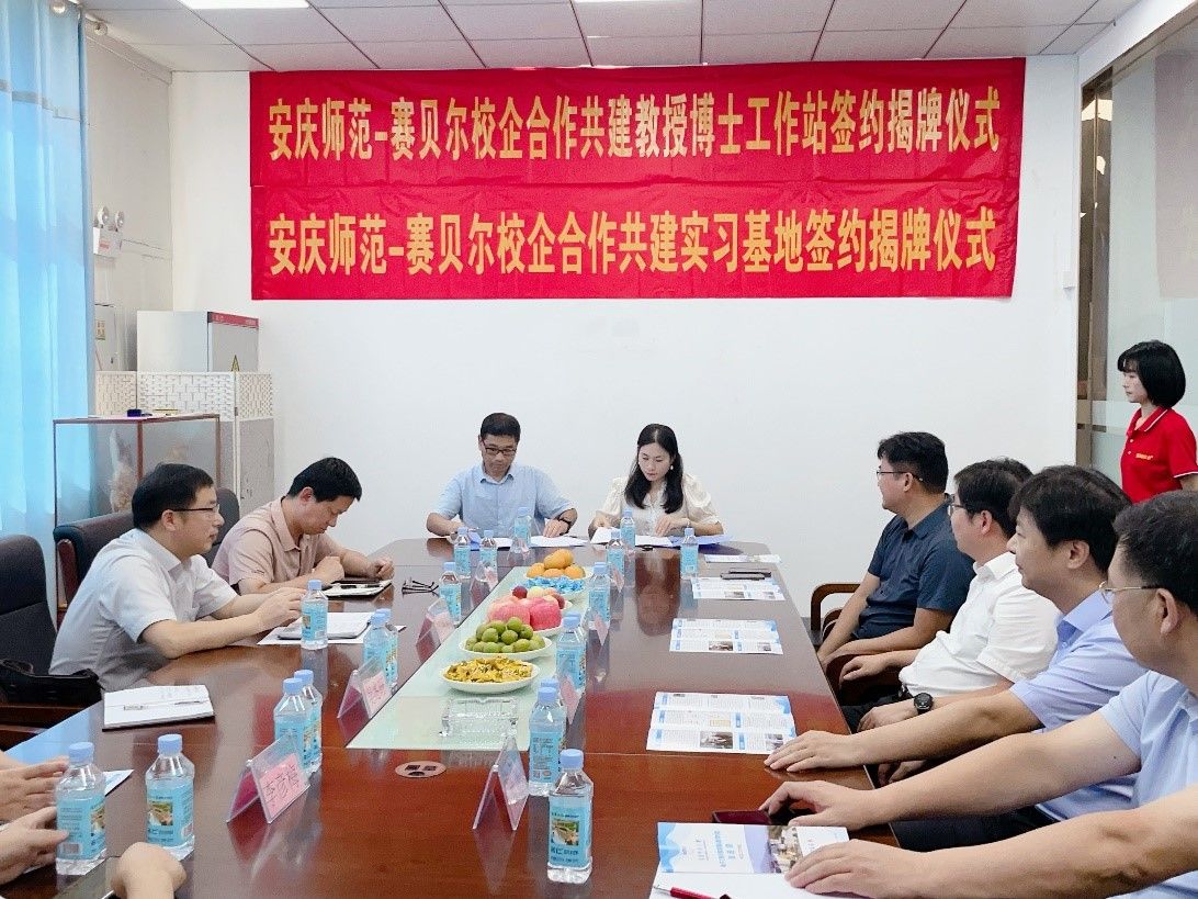 8月3日,太阳成集团tyc234cc院长董甲东带队赴安徽省赛贝尔智能装备有限公司,就太阳成集团tyc234cc与安徽赛贝尔智能装备有限公司共建教授博士工作站和实践教学基地事宜完成签约和挂牌。