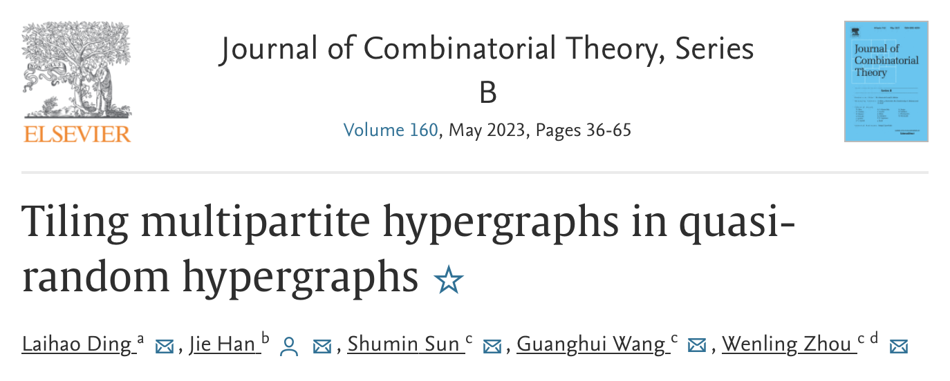 日前,北京理工大学数学与统计学院韩杰教授在国际权威期刊《Journal of Combinatorial Theory, Series B》连续发表题为“Tiling multipartite hypergraphs in Quasi-random Hypergraphs”和“Embedding clique-factors in graphs with low l-independence number”的两篇研究论文。此两篇论文研究了具有一定随机性的图与超图中 F 因子的存在性问题,给出了渐近最优的度条件和密度条件。