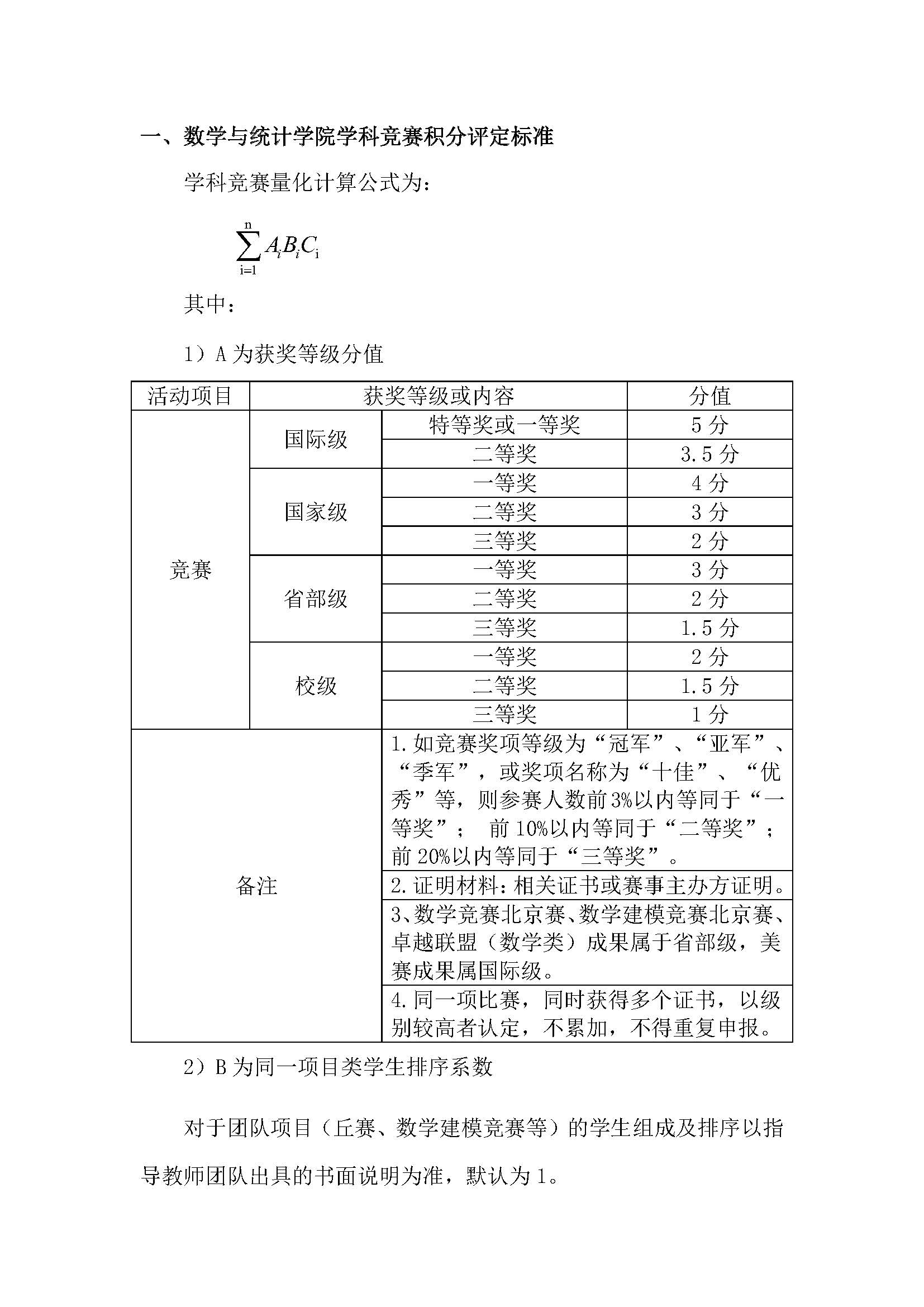 数学与统计学院2022年学科竞赛、学术论文、科技成果类项目积分评定细则