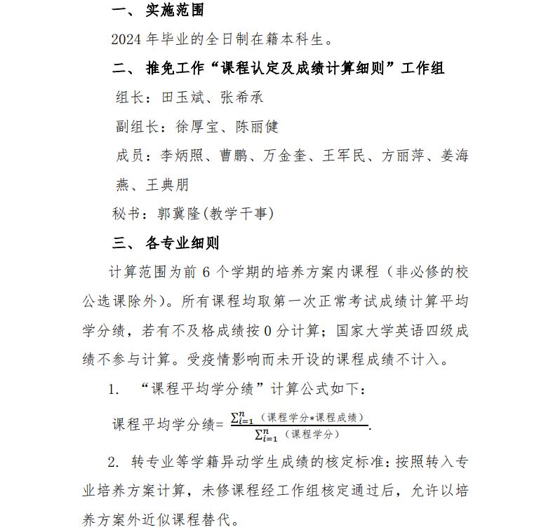 数学与统计学院2024年推荐优秀应届本科毕业生免试攻读研究生工作课程认定及成绩计算细则