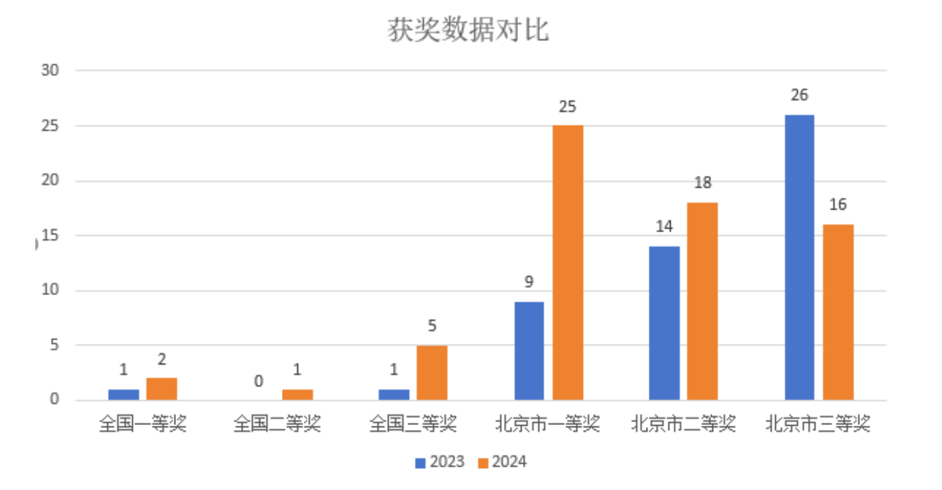 我校共有116支队伍成功参加了本届比赛,通过校赛选拔出70支队伍代表我校参加省赛和国赛的角逐。通过层层评比,我校学子共获奖(北京市)59支,其中获国家一等奖2支,二等奖1支,三等奖5支;北京市一等奖25支,二等奖18支,三等奖16支,创造了学校参加该赛事的最好成绩。