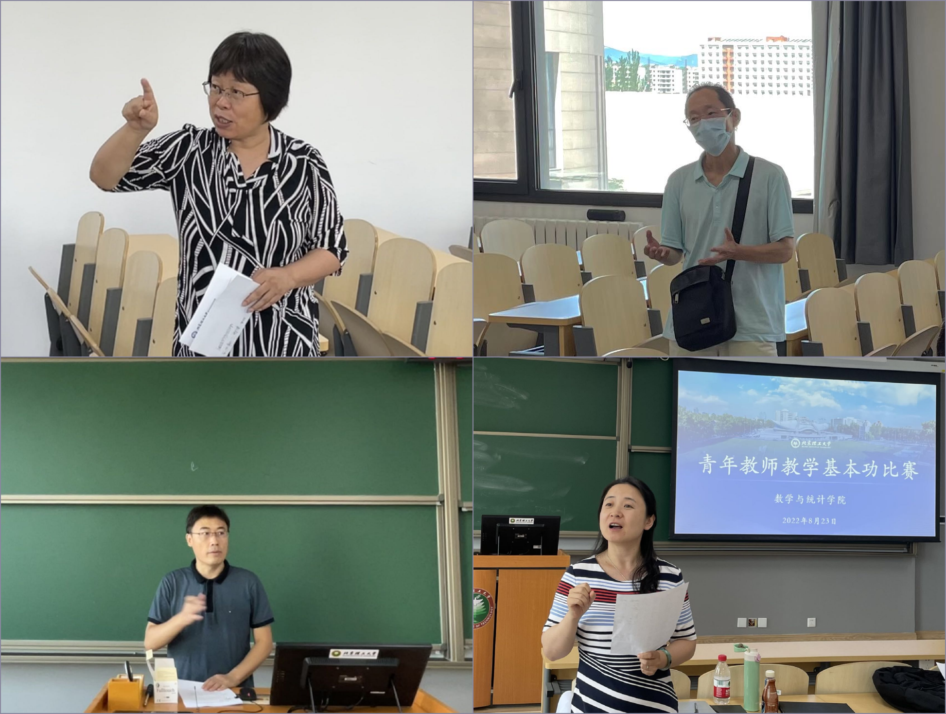 为进一步深化教育教学模式改革,提升青年教师教学质量,加强教学方法培训与交流,2022年8月22-23日,数学与统计学院在良乡校区文萃楼F302教室,举办了2022年青年教师教学基本功比赛。学院共计27位青年教师参赛,学院邀请了包括北京市教学名师、课程负责人在内的10名专家评委为参赛选手进行了指导与点评。