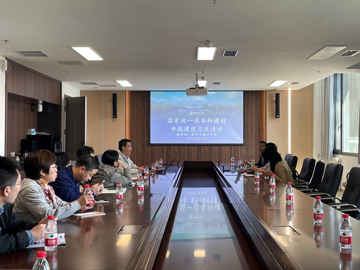 2023年4月25日下午,教务部、数学与统计学院共同举办国家级一流本科课程建设与申报交流活动,教务部副部长张玮、课程教材室朱元捷、刘畅,中国大学MOOC区域经理梁世超,数学与统计学院教师代表参加了活动。会议由数学与统计学院副院长徐厚宝主持。