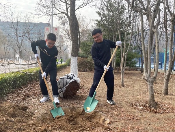 三月春风好时节,植树添绿正当时,三月雷锋月,更是种植月。3月13日,应用数学系党支部、21级学硕团支部同学,参加学校2022年植树节活动。挖坑、栽树、填土、浇水,大家配合默契,分工明确。一颗颗新栽下的树苗矗立在阳光下,为美丽的校园增添了一抹新绿。