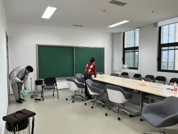 数学与统计学院学生党员对党建活动室703、学生谈话室707和学院会议室710进行了打扫整理,用实际行动为学院师生提供了一个良好的工作学习环境。
