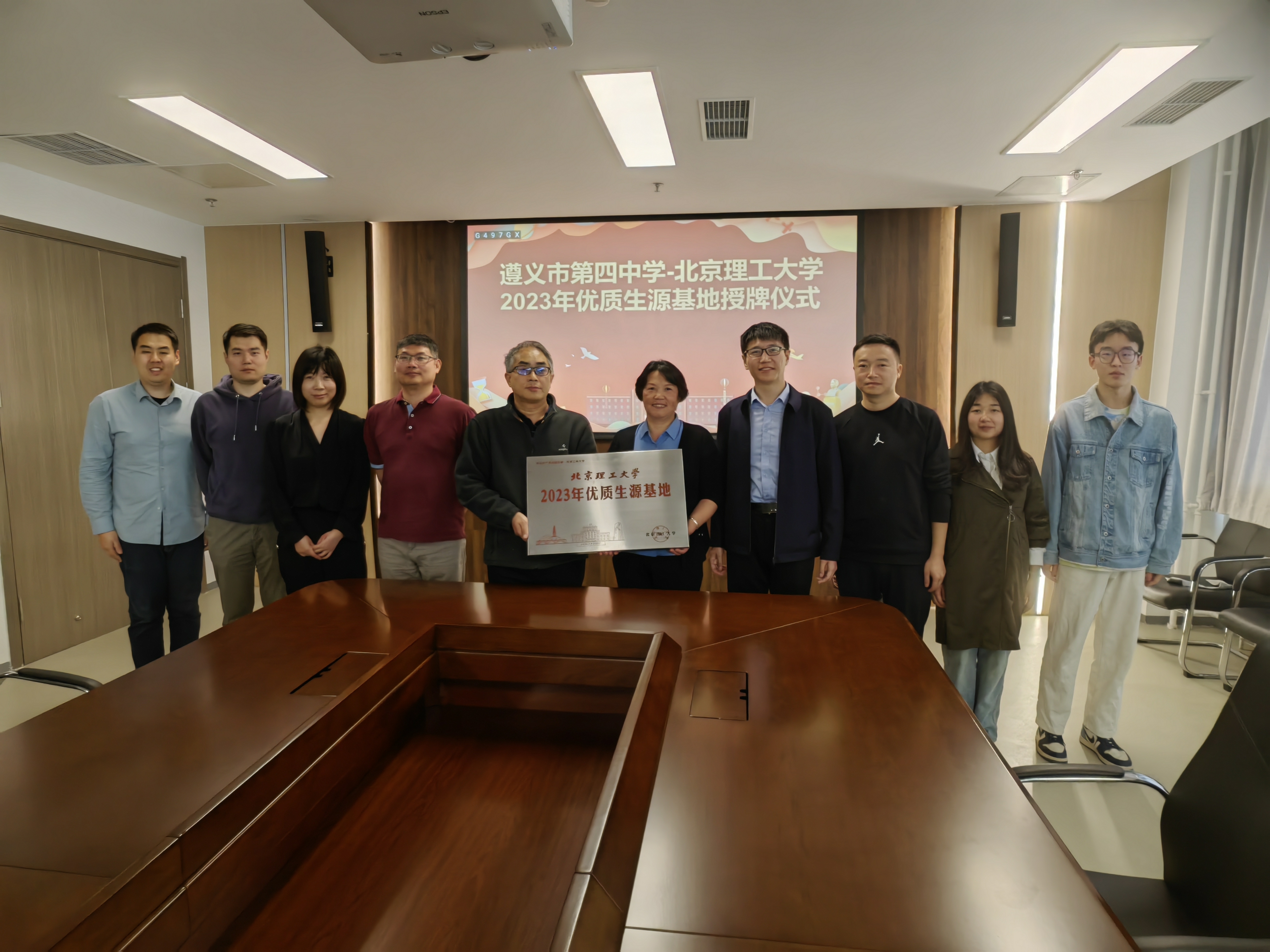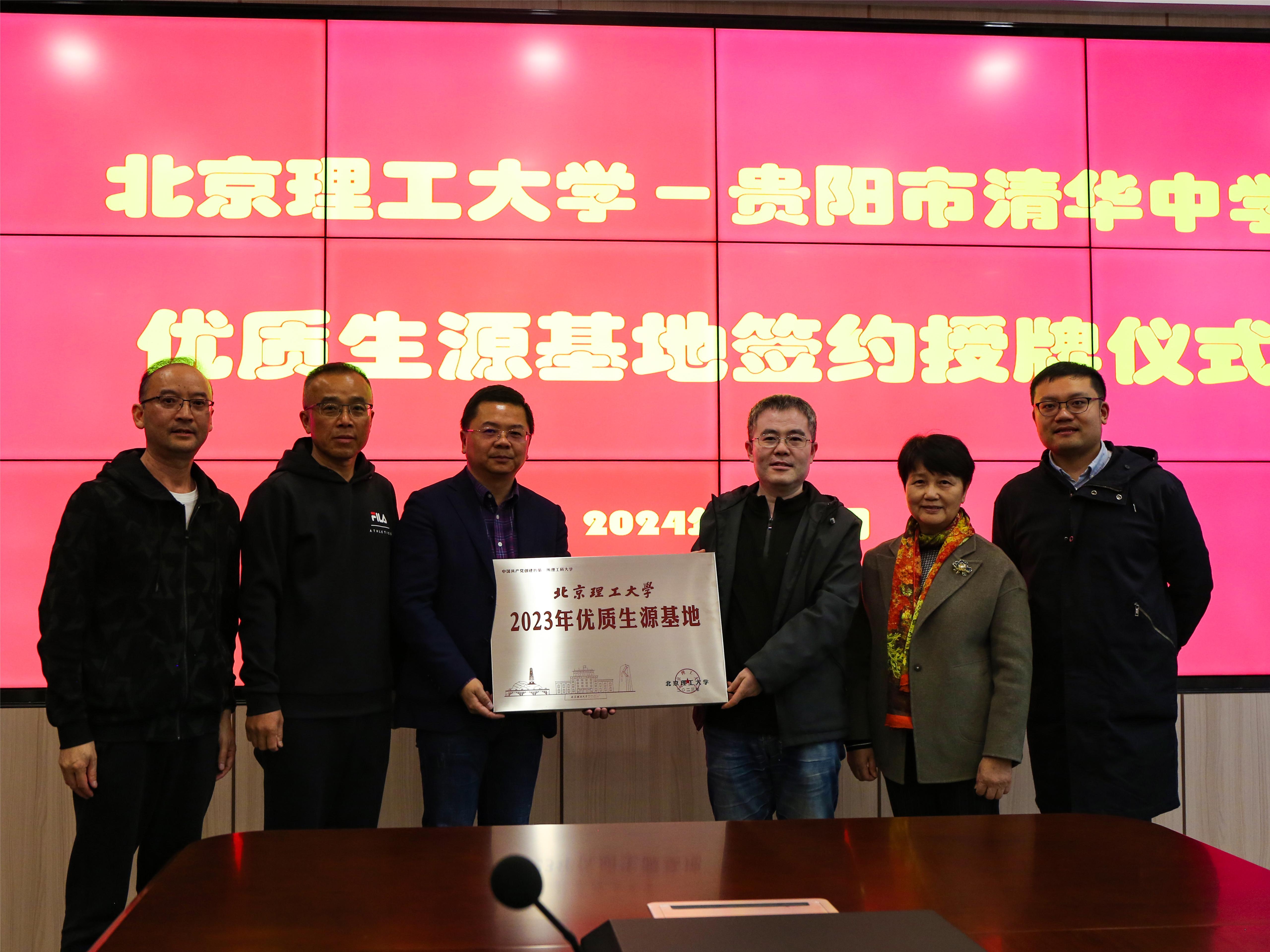 4月17日,招生组举行北京理工大学-遵义市第四中学2023年优质生源基地授牌仪式,遵义四中党委书记李化宪、招生处主任杨金强、教师席菲菲,数学与统计学院党委书记张希承、党委副书记副院长鲍锐、遵义四中领航人和思源学子参加活动。