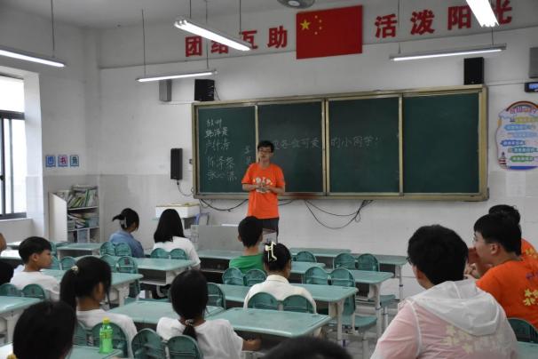 7月21日下午的班级建班会上,为各班级授课的实践成员与同学们分别作了简短的自我介绍,逐渐熟悉起彼此的情况。在欢声笑语中,原本的陌生感逐渐淡去,实践队员们和梵瑞社区的小朋友们成功“破冰”,建立起亲密团结的关系。