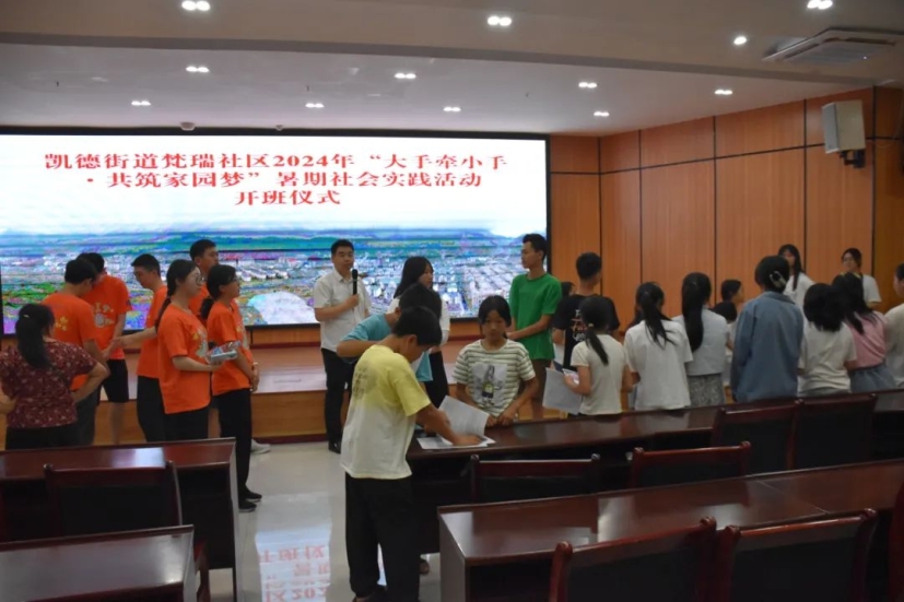 7月21日,在梵瑞社区报告厅举行“学子报春晖,共筑家园梦”暨大学生社会暑假实践活动开班仪式,梵瑞社区党委书记、居委会主任杨丽主持开班仪式,江口县委副书记、梵瑞社区驻村第一书记陈举国致辞。